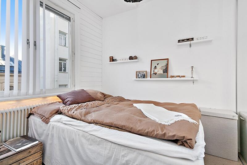 Эту небольшая квартиру, которая находится в Швеции, арендует парень мечтающий стать музыкантом.
