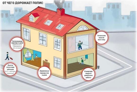 Позволяется выбирать набор актуальных рисков, исходя из индивидуальных особенностей жилья. Например, страхуя квартиру, которая расположена выше первого этажа, можно совершенно спокойно исключать риск наезда транспортных средств, а для квартиры или частного дома, оборудованных сигнализацией и бронированной дверью, можно исключить риск кражи.