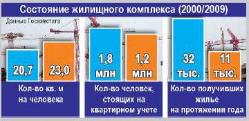 Так, с 2000 по 2009 год количество квадратных метров на душу населения составил – 23 м2, что всего на 2,3 «квадрата» больше, чем в 2000 г.