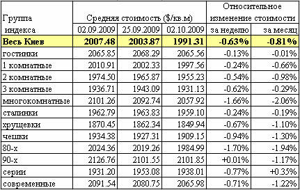 В консалтинговой компании "SV Development" придерживаются другого мнения. По их данным, за период с 1 июля по 1 октября 2009 года средняя цена продажи 1-3 комнатных квартир на вторичном рынке в Киеве выросла на 2,77% ($41) до $1536 за 1 кв.м.