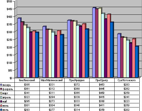Арендные ставки в июле снизились во всех районах Одессы. В Киевском районе аренда подешевела в среднем с $301 до $293 за квартиру в месяц, в Малиновском - с $304 до $277, в Приморском (Аркадия) - с $348 до $314, Приморском (Центр) - с $411 до $359, в Суворовском (Котовского) - с $250 до $202 (см. Диаграмму 3).