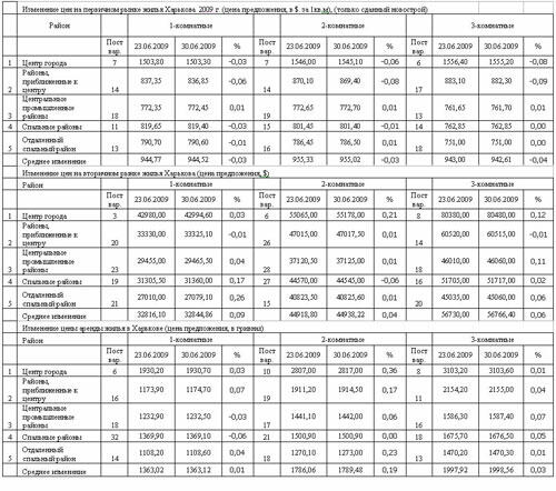 Напомним, что средняя стоимость 1. кв.м. на рынке вторичного жилья Харькова на 23 июня составляла $875, 44. За неделю с 16 по 23.06 количество покупателей возросло на 6 %, количество выставленных объектов недвижимости уменьшилось на 11 %.
