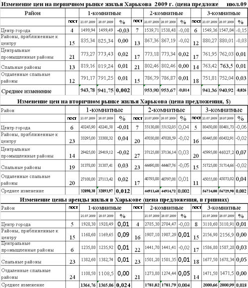 Таблица 1. Заявленная стоимость квартир в Харькове (07.-14.07)*: