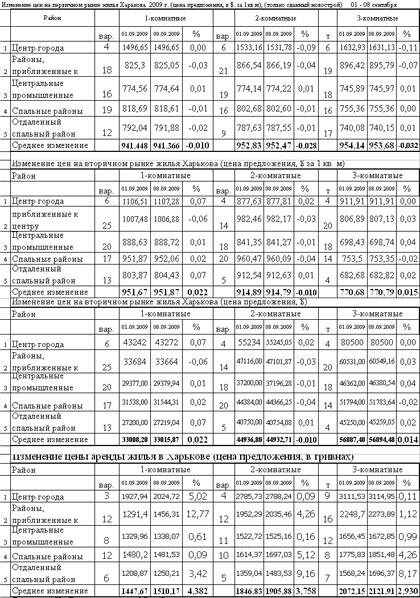 Таблица 1. Цены на квартиры в Харькове (01.09.-08.09. 2009г.) *