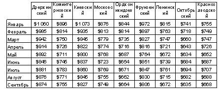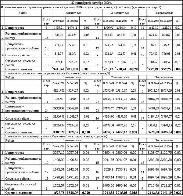 Таблица 1. Цены на жилье в Харькове на 06.10.2009. *