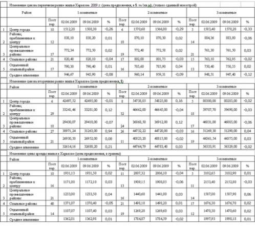 Таблица 1. Заявленная стоимость квартир в Харькове (1-9.06)*