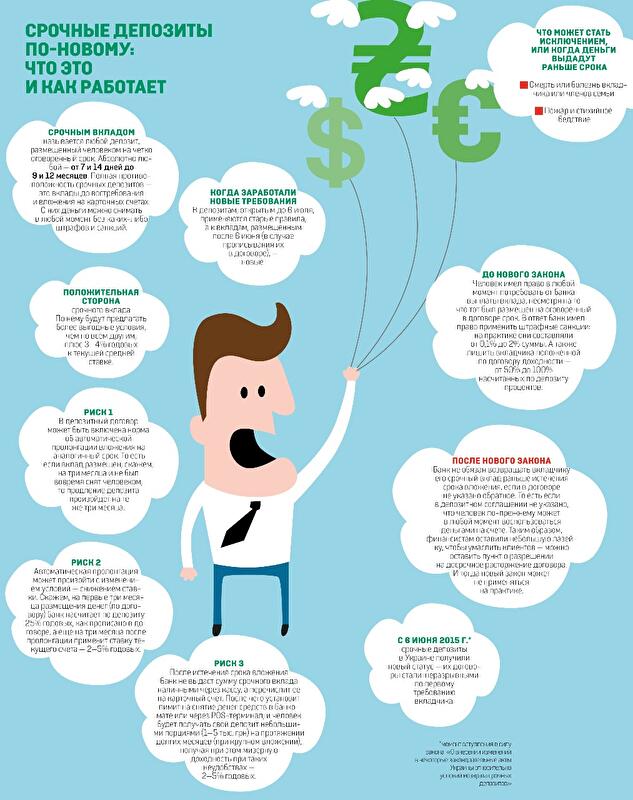 Многие финучреждения не рискнули лишить вкладчиков права на досрочное снятие средств, к которому украинцы привыкли за годы независимости. Условия большинства открытых после 6 июня счетов позволяют вкладчикам забрать деньги в любой момент, хотя по новому закону банк не обязан возвращать вкладчику его срочный вклад раньше истечения срока вложения (если в договоре не указано обратное). То есть в этих договорах прямым текстом написано, что человек по-прежнему может в любой момент воспользоваться деньгами на счете. И он сможет, потому что такой пункт в договоре законом не запрещен.