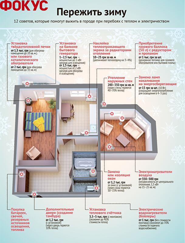 Утепление стен и установка счётчиков всё же не позволит пережить грядущую зиму с комфортом. Если температура теплоносителя будет опущена до технологического минимума (чтобы не замёрзли трубопроводы), киевлянам не обойтись без отопительных приборов. Рост продаж обогревателей в торговых сетях отмечают уже сейчас. Особым спросом пользуются электроконвекторы и масляные обогреватели — к середине октября на них прогнозируют настоящий бум. "С ними, как и с бойлерами, возможны перебои. Ведь спрос будет расти: зимой ожидается температура в квартирах 16–18 градусов при норме 20–22", — говорят в сети "Фокстрот".