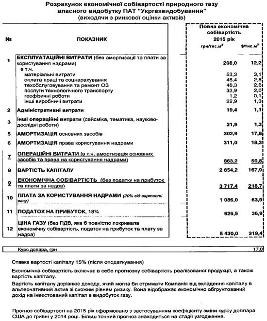 Якщо від цієї вартості відняти плату за користування надрами в розмірі 20%, то мінімальна виручка від реалізації газу, яку повинне одержати видобувне підприємство, становить 456 грн за тис куб м, що перевищує задекларовану собівартість 352,8 грн.
