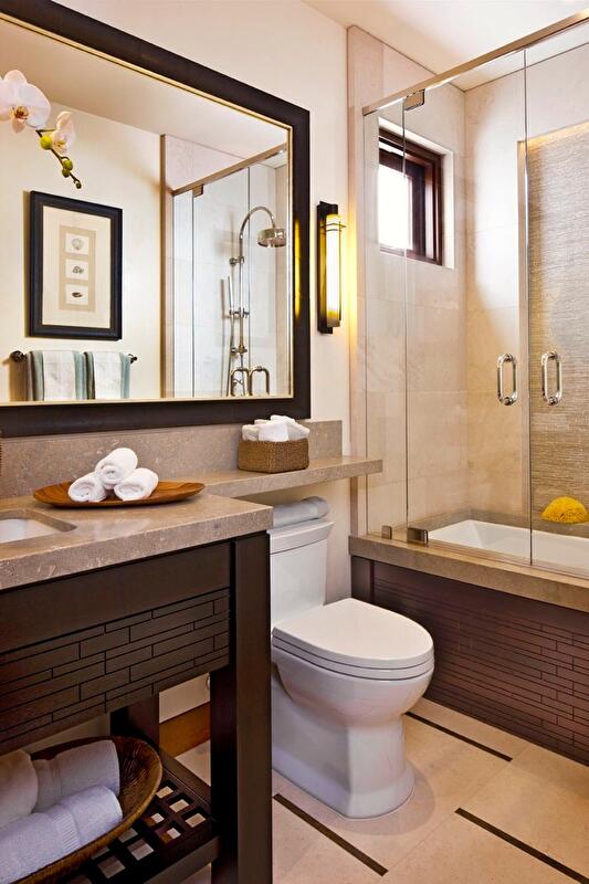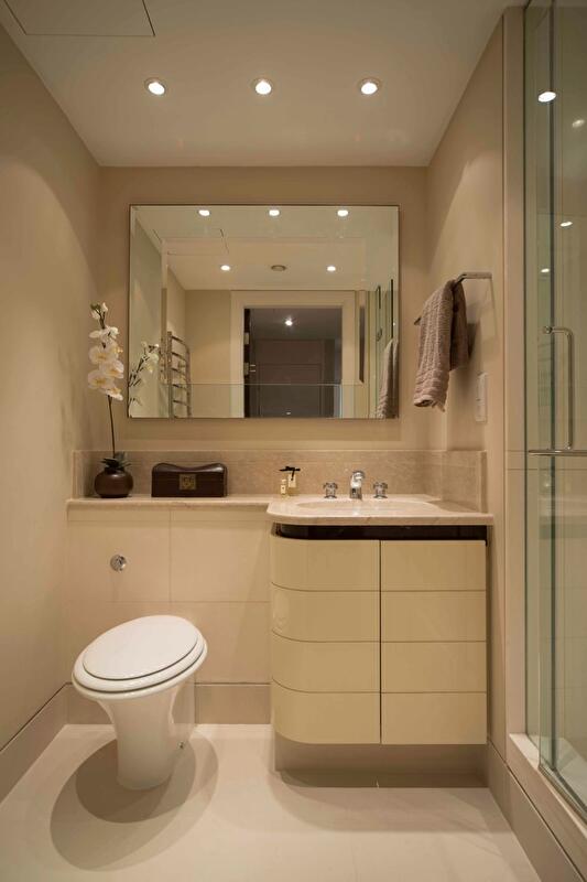 Ваша задача, в таком случае, заключается в том, чтобы как можно более «разгрузить» и освободить область именно над полом и в нижней части стен. Для этого следует грамотно организовать ничем не занятые участки стен, зоны под потолком, вокруг зеркала, ниши (если они предусмотрены планировкой).
