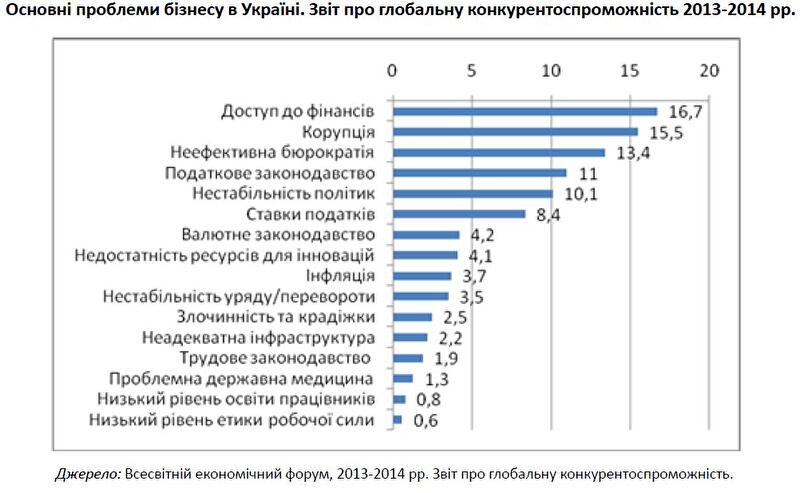 Еще одной проблемой для украинского бизнеса является низкий уровень конкуренции на внутренних рынках. Во многих сферах наблюдается высокая концентрация крупных предприятий, а показатели выхода на рынок новых фирм остаются низкими. В такой ситуации новым игрокам на рынке производства товаров и услуг трудно укрепить свои позиции, да и вообще выжить.