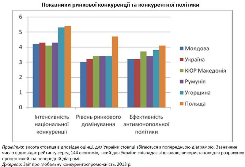Основные проблемы конкурентной среды состоят в том, что много секторов имеют высокую концентрацию фирм и олигополистических структур, которые приводят к завышенным ценам. В дополнение к этому иностранные инвесторы покидают нашу страну, а без их вложений уровень развития предприятий остается низким. К примеру, по данным Международной финансовой корпорации (IFC), иностранные инвестиции в украинский бизнес в первой половине 2013 года снизились на 53%, до $1,3 млрд.