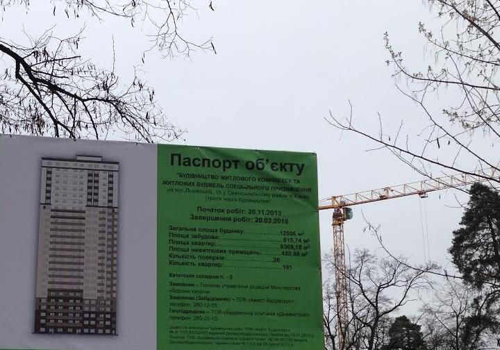 Данный участок находится в пользовании Министерства обороны еще с 50-х годов прошлого века. Еще 10 лет назад было решено использовать участок для обеспечения военнослужащих жильем. С этой целью Минобороны на конкурсе привлекло к строительству компанию «Инвест-Будресурс», которая взялась за управление проектом в обмен на часть квартир. В настоящее время возводится жилой комплекс, часть квартир в котором (более 11 000 кв.м.) должна быть передана семьям нуждающихся в жилье военнослужащих украинской армии.