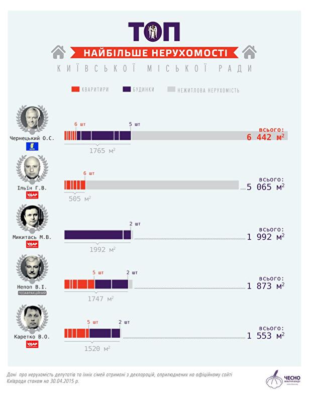 Как оказалось, Владимир Карплюк может дать фору столичным местным чиновникам: по количеству недвижимости мэр Ирпеня бы с легкостью занял первое место. У него аж 67 квартир (общая площадь более 7000 квадратных метров), которые он приобрел в 2013 году и заплатил за них почти 21 миллион гривен. А также 4 садовых дома.