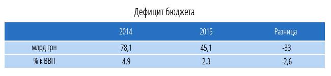Одним из ключевых успехов работы Кабмина Яресько называет сокращение дефицита бюджета: с 4,9% ВВП в 2014 году до 2,3% ВВП в 2015-м. В абсолютных цифрах - с 78 до 45 млрд грн. "Мы не допустили безответственного роста дефицита госбюджета в течение года, - заявила министр. - И одновременно с ростом расходов мы обеспечили сокращение дефицита в полтора раза по сравнению с 2014-м".