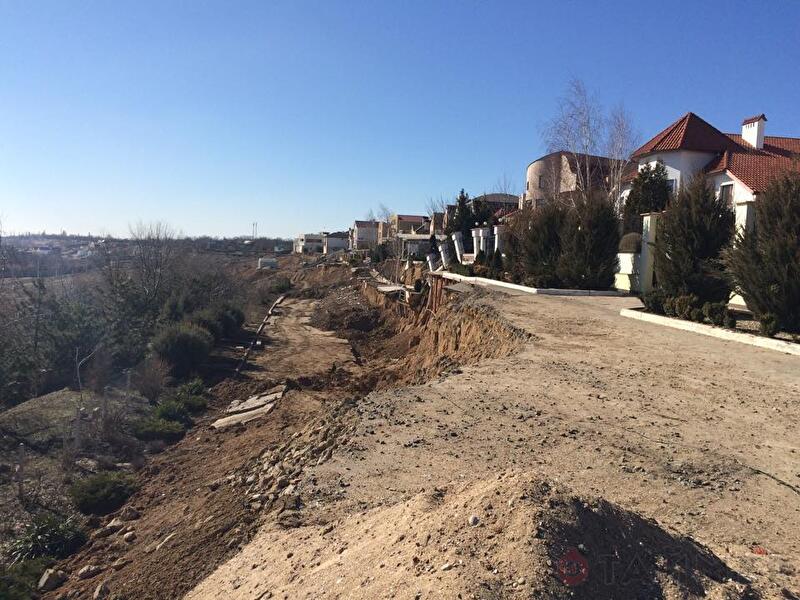 Оползень в этом месте продолжается и уже подступил к домам практически вплотную — дальнейшее развитие событий не сулит расположенной здесь элитной недвижимости ничего хорошего.