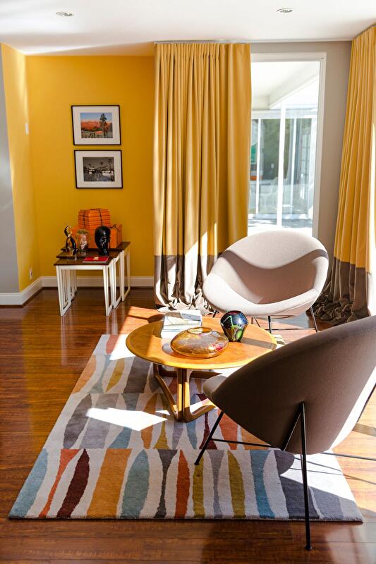 Калифорнийская студия дизайна и архитектуры Maxime Jacquet представила красочное оформление интерьера частного дома в Беверли-Хиллз в стиле модерна середины прошлого века.
