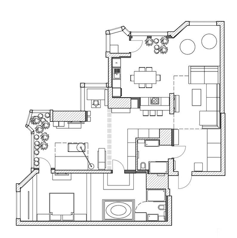 На какие эксперименты вы готовы пойти? Как насчет открытого бетона на стенах и потолке? Подумайте, получится нечто особенное. Примерно в таком ключе проходило общение молодых людей – дизайнеров Нины и Яны с хозяевами квартиры.
