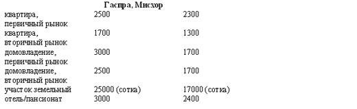 В приведенной ниже таблице указаны цены на первичное и вторичное жилье, на коммерческие и курортные объекты, а также на земельные участки в различных регионах Крыма: