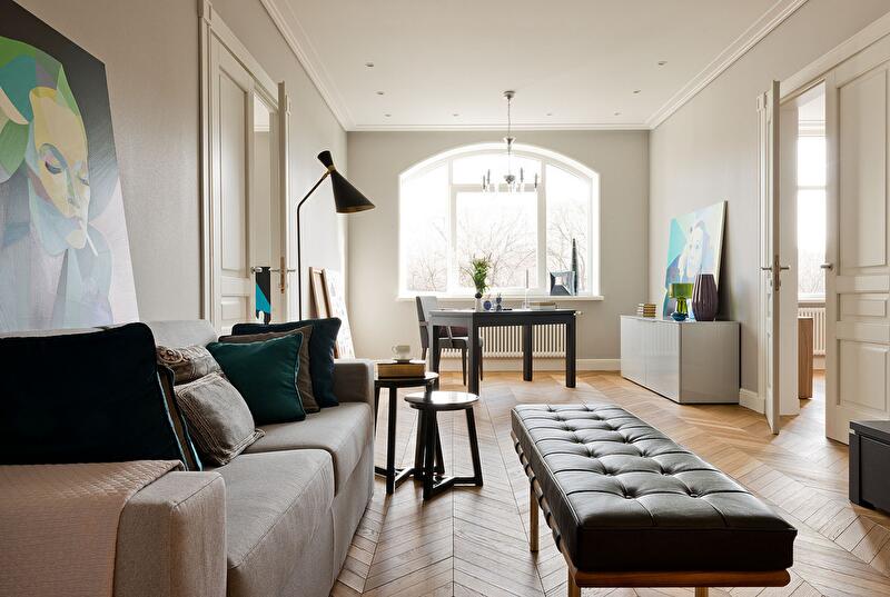Mонохромная квартира с яркими акцентами