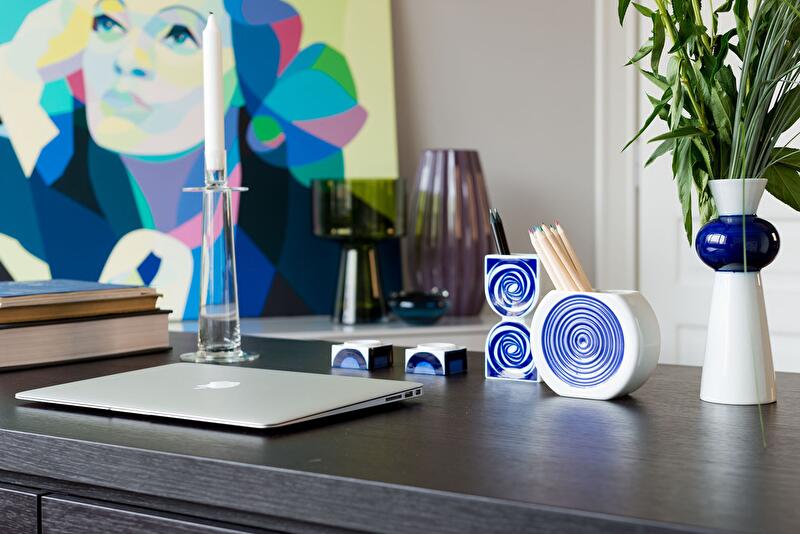 Главную роль в оформлении этого интерьера играет коллекция винтажного фарфора в стиле поп-арт и современной живописи. Здесь представлены работы молодых художников, уже получивших признание не только в России, но и за рубежом: Ильи Кукушкина, Марины Федоровой, Янниса Маркопулоса. А белорусский художник Михаил Гулин приобрел известность не только своими живописными работами, но и экстравагантными уличными перфомансами. Все работы – из собрания Osnova Gallery (Москва).