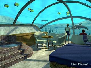 Главный инженер проекта Брюс Джонс, который до сих пор занимался проектированием подводных лодок для очень богатых людей, говорит, что посетители его отеля не будут испытывать недостатка в развлечениях. По эскалаторам они будут спускаться в герметично закрытые кабинки (всего их 22), каждая из которых представляет собой садик из коралловых рифов, где гости смогут развлекаться кормлением рыб с помощью особых автоматических устройств.