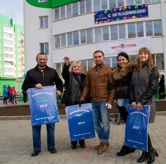 На празднике по случаю торжественной сдачи дома компания «Интострой» подвела итоги детского конкурса «Дом, в котором мы живём». Все дети получили подарки. Также, согласно традиции, в новый дом впустили кота. На удачу!