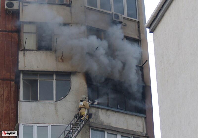 По данным пресс-службы Главного управления МЧС в Крыму, пожар возник в квартире на шестом этаже, пламя вырывалось из окна квартиры.
