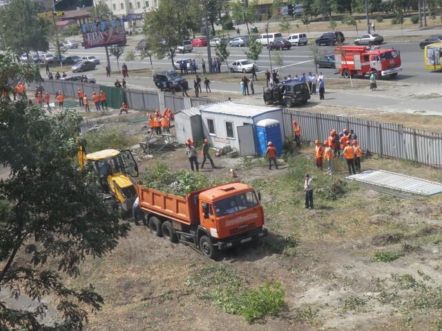 На территории строительства супермаркета на Маяковского, 4 в Киеве и вокруг нее находится около сотни охранников.