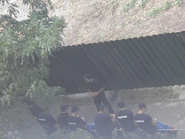На скандальную стройку на Троещине стянули охранников в черных футболках. Фото