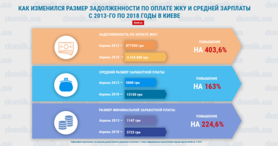 На сколько увеличились долги киевлян по оплате ЖКУ с 2013-го по 2018 годы: инфографика