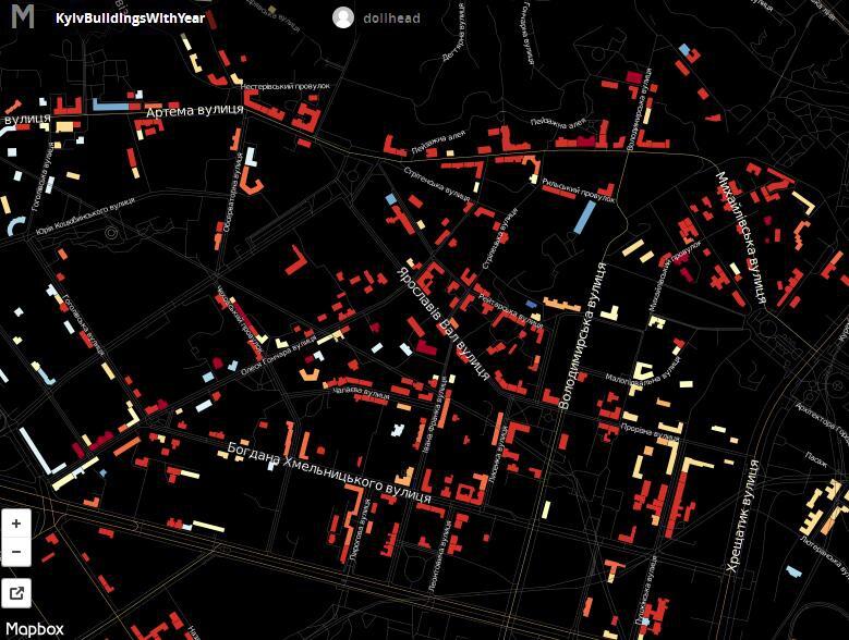 Пока на карте обозначены только 8 тысяч из 80 тысяч построек в городе (включая частный сектор), также многие дома еще не окрашены в свой цвет. "Информацию о зданиях мы искали на сайтах объявлений, ведь часто арендодатели и продавцы указывают год постройки дома. Также мы подали запрос на эти данные в департамент градостроительства и архитектуры КГГА, но пока ответа нет", — рассказывает программист.