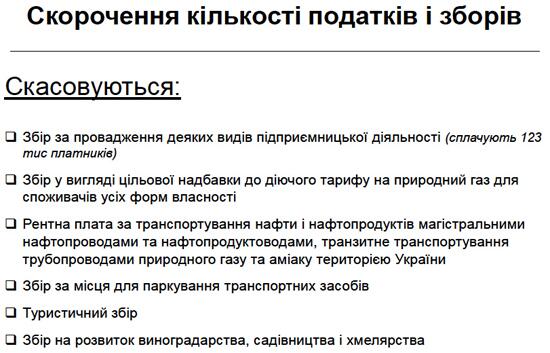 Скорочення кількості податків з 22-х до дев'яти - необхідний крок.