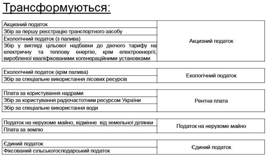 Усі інші платежі зводяться у великі податки, а не скасовуються.