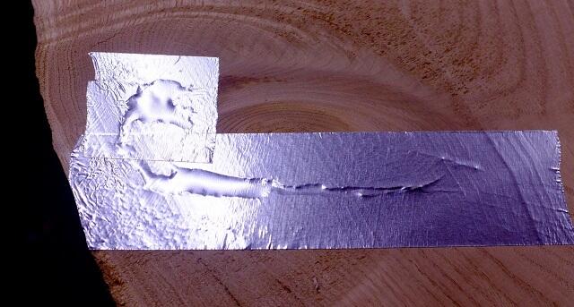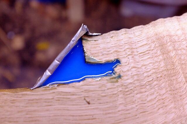 Сначала герметизируем отверстия снизу доски, для этого используйте алюминиевую водонепроницаемую ленту. Она достаточно липкая и позволит в дальнейшем не повредить поверхность застывшей смолы.