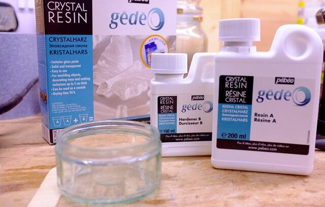 Далее приступаем к смешиванию смолы. Тщательно перемешиваем смолу и добавляем в неё пигмент. Чтобы облегчить процесс перемешивания нужно немного нагреть смолу феном или обогревателем, это позволит пузырькам быстрее всплывать. Смесь смолы с пигментом оставляем немного остыть.