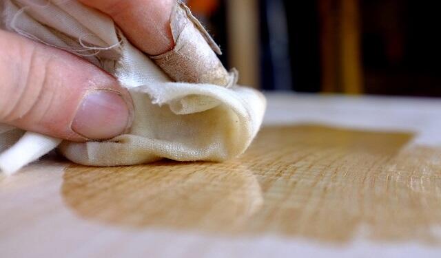 Далее приступаем к полировке, обрабатываем доски в несколько слоев вареным льняным маслом до блеска. После этого вскрываем морилкой и лаком.