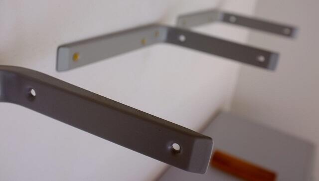 Крепим полки на металлические кронштейны.