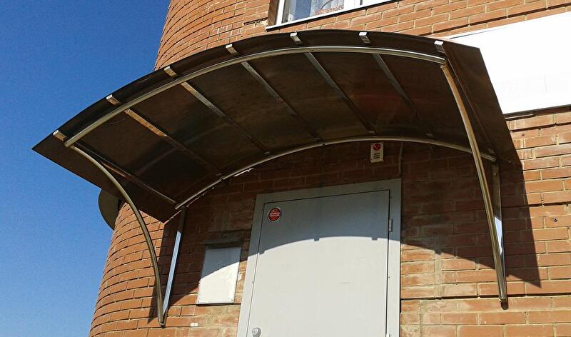 Имея ограниченный бюджет, люди выбирают козырьки изготовленные из нержавейки. Этот материал долговечен и легок в обработке. С его помощью можно изготовить конструкцию любой формы.