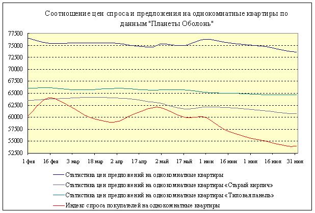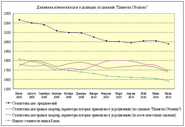 За период с 01.07.2010 по 01.08.2010 усредненная цена предложений (в долларах за квадратный метр) снизилась на 1,6%.