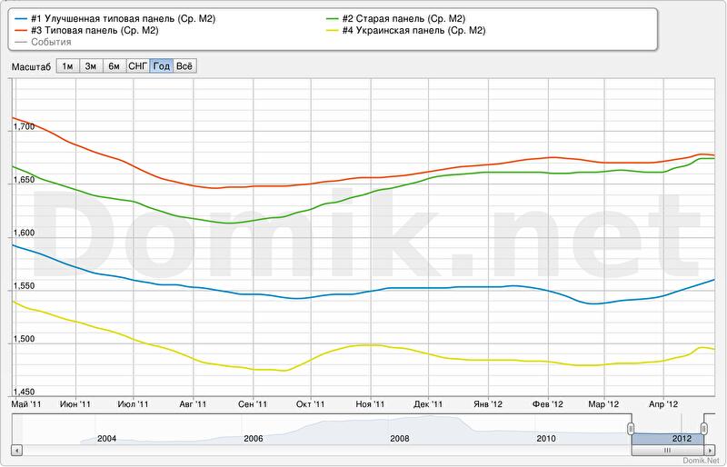 В конце марта 2012 года мы сделали общедоступным сервис "Статистика и динамика цен на недвижимость" //domik.ua/nedvizhimost/dinamika-cen.html .