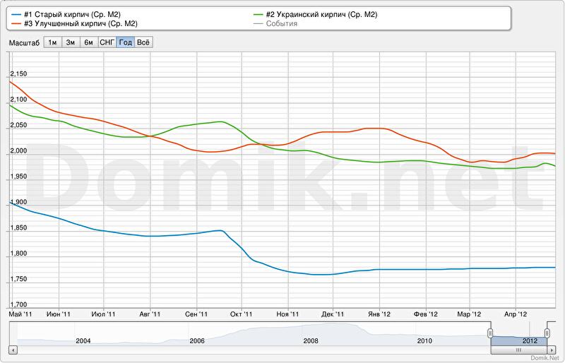 Зеленая кривая — статистика цен предложений в сегменте «украинский кирпич»