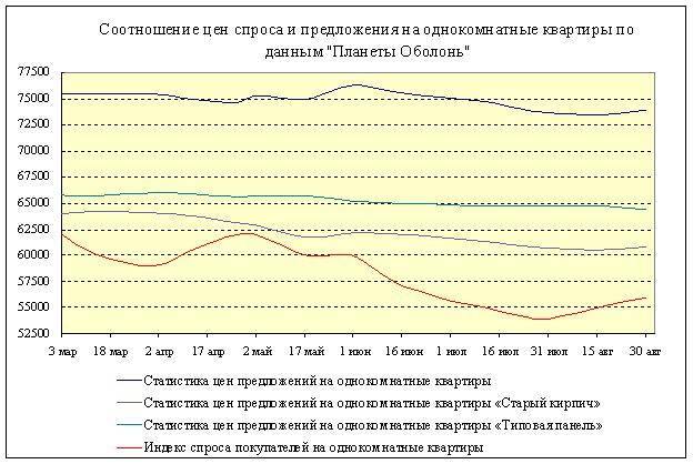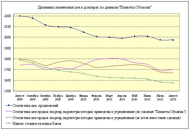 За период с 01.08.2010 по 01.09.2010 усредненная цена предложений (в долларах за квадратный метр) практически не изменилась.