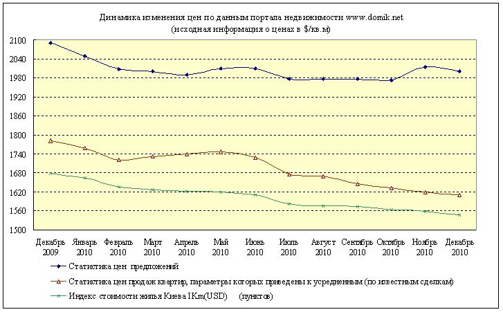 За период с 01.12.2010 по 01.01.2011 усредненная цена предложений (в долларах за квадратный метр) снизилась на 0,8%.