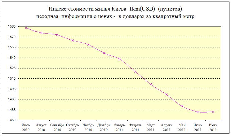 Индексы стоимости киевского жилья рассчитываются на основе актуальной базы недвижимости портала недвижимости domik.ua (то есть на основе цен предложений), но учитывают цены продаж и размеры торгов, а также динамику их изменения в предыдущие периоды. При этом информация о ценах задается либо в долларах за квадратный метр, либо в гривнах за квадратный метр.