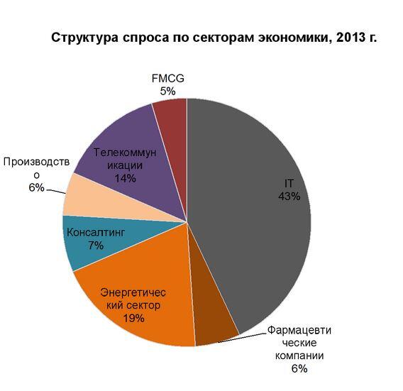 Общее предложение торговых площадей в Киеве на начало 2014 года составило около 1,5 млн кв. м. Лидерство в формировании спроса держат IT-компании - 43%, сфера энергетики - 19%, а также сектор телекоммуникаций - 14%.