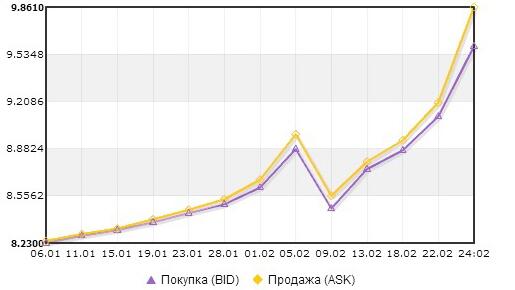 Курс гривны по отношению к доллару в январе-феврале 2014 года