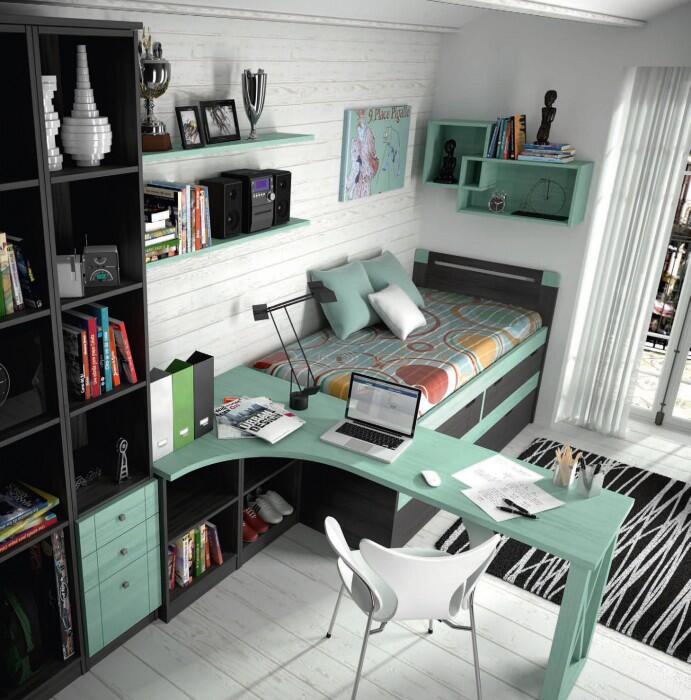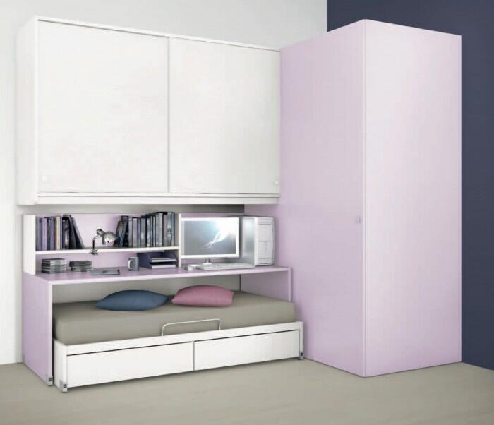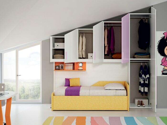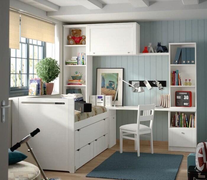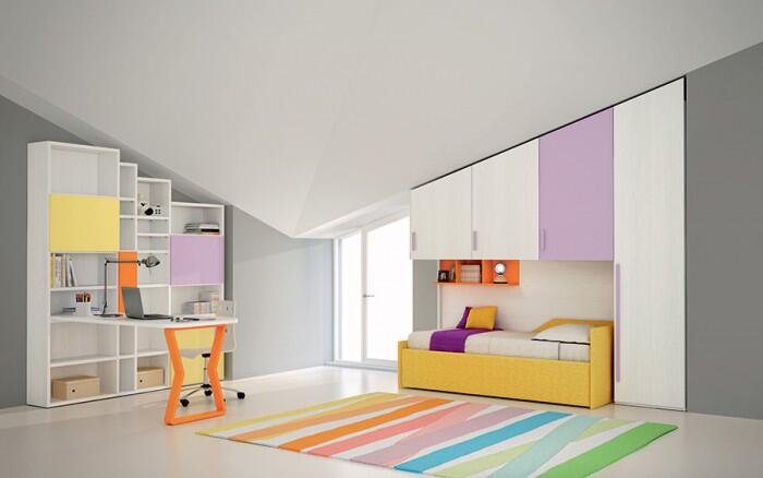 Если комната имеет маленькие габариты, и вы совершенно не представляете, каким образом уместить на площади 10-12 кв. м кровать, стол, да еще и шкаф для одежды, не отчаивайтесь. Справиться с непростой задачей помогут современные мебельные конструкции, которые отличаются высокой функциональностью и экономят полезную площадь, задействуя неиспользуемое пространство. Например, модульные системы шкафов могут быть встроены под кроватью-чердаком. Если же ребенок категорически не хочет спать наверху, стоит обратить внимание на подвесные системы “bridge”, которые разработали итальянские производители модульной мебели. Места для хранения одежды в таких системах располагаются над кроватью или столом.