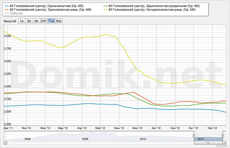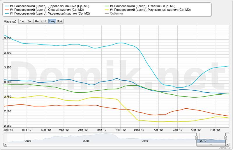 Как мы видим, ценовые тенденции в Голосеевском-центре достаточно противоречивы и не совсем типичны для центральных районов. По сути, единственный сегмент, пользующийся здесь популярностью — однокомнатные квартиры в новостройках, что свойственно, скорее, бюджетным спальным массивам. Впрочем, все новостройки здесь, в отличие от тех же спальных массивов, кирпичные, что влияет на их стоимость наравне с местом расположения. Так называемые элитные квартиры в Голосеевском-центре не в цене, в отличие от массива Оазис-Оболонь , - они дешевеют стремительнее других. А стоимость квадратного метра квартир большой площади (3-4 комнаты) в домах серии «улучшенный кирпич» и вовсе уже близки к общегородским.
