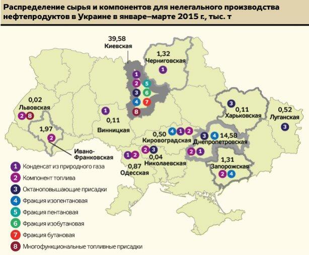 Если контрабанда наиболее часто встречается лишь на юге страны, то следы фальсификата есть повсюду. Отследить это можно по поставкам различных компонентов, имеющих узкое применение — только в производстве моторных топлив. По данным "Консалтинговой группы А-95", в первом квартале 2015 г. в Украину было импортировано 62 тыс. т октаноповышающих и антидетонационных присадок, а также некондиционных продуктов нефтепереработки.